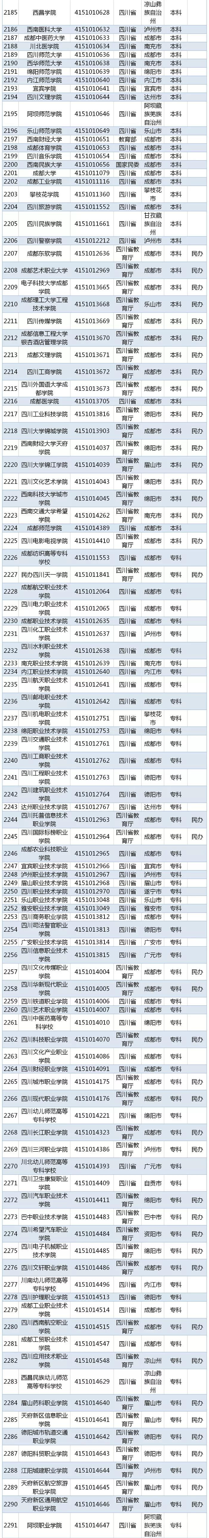 教育部最新發(fā)布2019全國(guó)高校名單來(lái)了!四川省普通高校126所