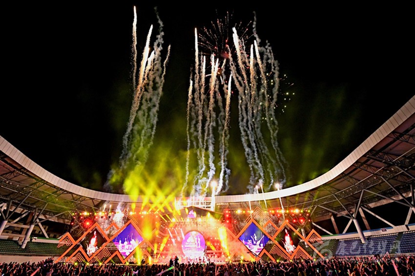 在開幕式現(xiàn)場,四川特色與國際潮流相互輝映,大熊貓、太陽神鳥等元素隨處可見。一場鼓樂舞點燃開幕式的重磅環(huán)節(jié)——“成都之約”。熱烈激昂的音樂響起,鼓聲隆隆,舞姿翩翩,演員們歡呼雀躍,表達出“中國歡迎你”“成都歡迎你”的熱情。主席臺前的跑道上,一幅50米×15米的“歡樂與榮耀”巨型畫卷徐徐展開。“歡樂與榮耀”正是本次世警會的主題,各個國家、地區(qū)和國際組織的參加人員將在成都共同感受“歡樂與榮耀”的美好時光。
