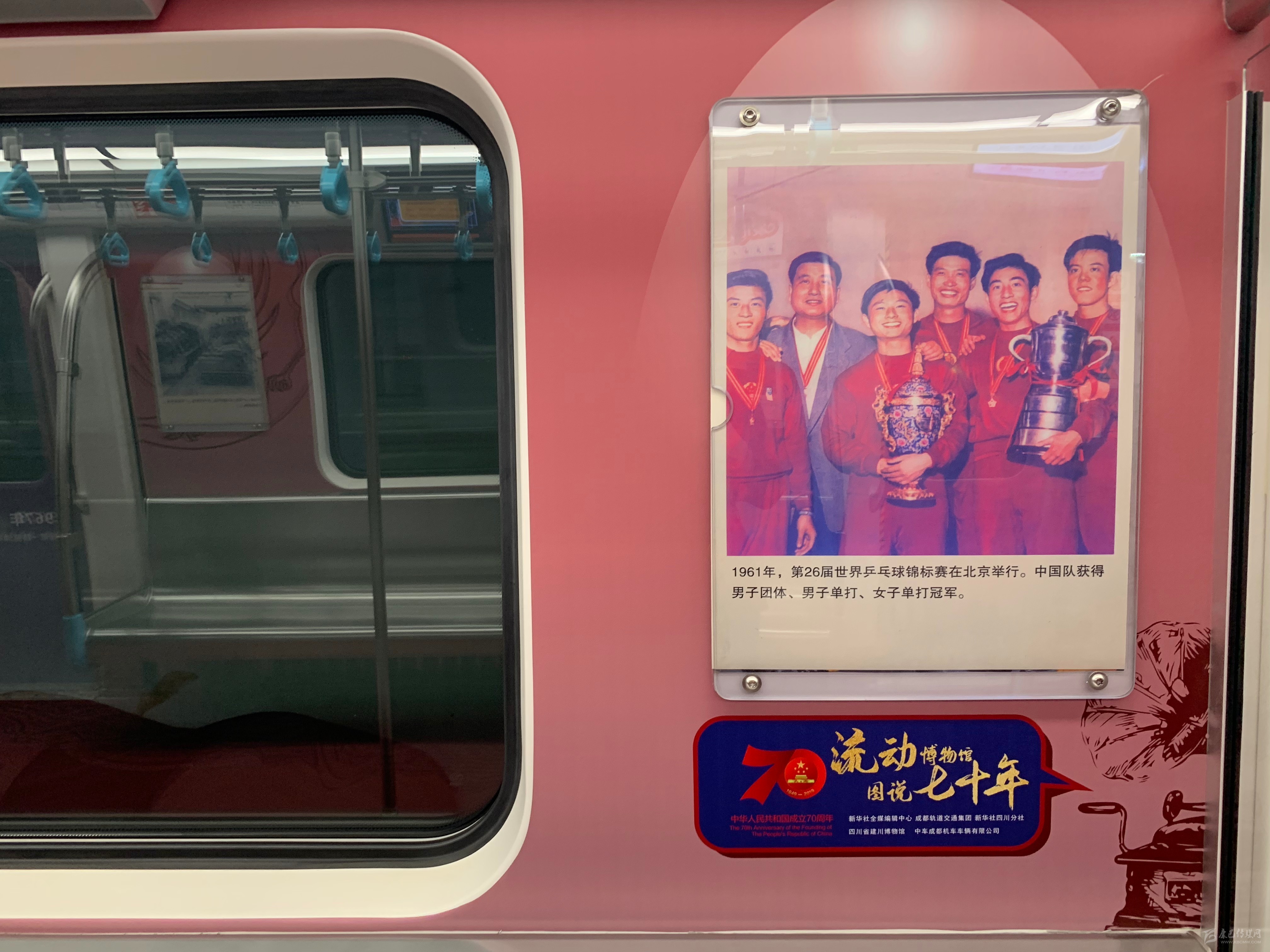 為慶祝中華人民共和國(guó)成立70周年,9月18日,“流動(dòng)博物館”號(hào)主題列車在成都地鐵7號(hào)線(環(huán)線)正式上線?!傲鲃?dòng)博物館”以精心挑選的老照片、文物復(fù)印件和全新原創(chuàng)愛(ài)國(guó)歌曲伴隨乘客回顧新中國(guó)70年光輝歲月,見(jiàn)證新中國(guó)70年來(lái)的歷史巨變。