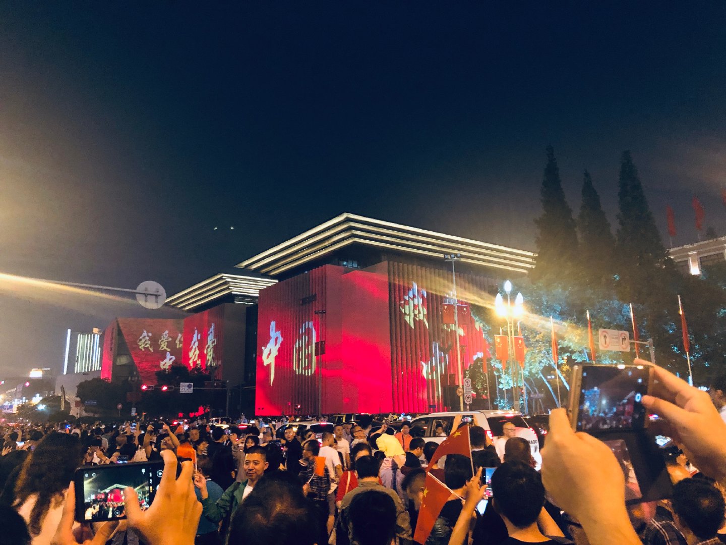 為慶祝新中國成立70周年,成都市開啟超級(jí)夜景模式。四川大劇院、四川美術(shù)館、四川省圖書館、成都市博物院等建筑被大型投影包裹,美輪美奐!群眾紛紛拍照留念,還有群眾激動(dòng)地在現(xiàn)場合唱《我和我的祖國》,祝福祖國母親生日快樂。