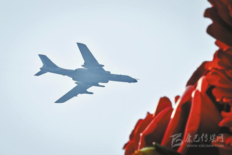 3架轟-6N、6架轟-6K組成的轟炸機(jī)梯隊(duì),1日上午分為3個(gè)3機(jī)楔隊(duì)呼嘯而來(lái)。