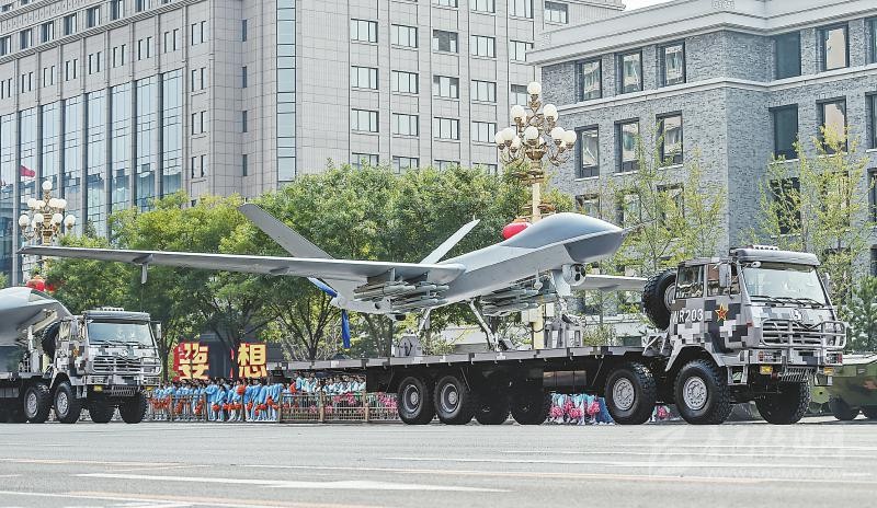 在兩輛指揮引導(dǎo)車帶領(lǐng)下,由攻擊-2無(wú)人機(jī)、攻擊-11無(wú)人機(jī)和反輻射無(wú)人機(jī)組成的無(wú)人作戰(zhàn)第2方隊(duì)通過(guò)天安門,向世界展示了中國(guó)無(wú)人作戰(zhàn)平臺(tái)的又一嶄新成就。