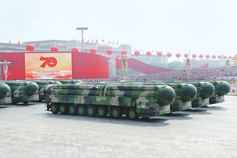 在受閱地面方隊(duì)壓軸的戰(zhàn)略打擊模塊中,首次亮相的東風(fēng)-41核導(dǎo)彈方隊(duì)彰顯了我國(guó)最先進(jìn)最具有威懾力大國(guó)長(zhǎng)劍的重要地位。