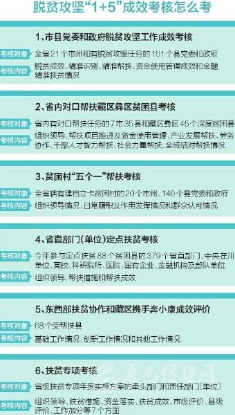 如何考?省扶貧開發(fā)局相關負責人介紹,具體而言,就是將黨委和政府脫貧攻堅工作成效考核、省直部門(單位)定點扶貧考核、扶貧專項考核、省內對口幫扶藏區(qū)彝區(qū)貧困縣考核、貧困村“五個一”幫扶考核、東西部扶貧協(xié)作和藏區(qū)攜手奔小康成效評價統(tǒng)一整合為脫貧攻堅成效考核,一支隊伍完成所有考核。