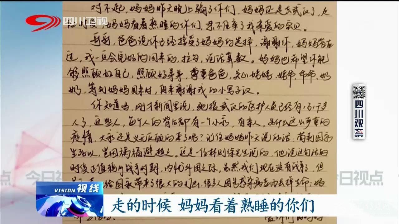 “媽媽還是騙了你,去了武漢,走的時候看到你們還在熟睡,忍不住親了我親愛的寶貝。哥哥,爸爸說你已經(jīng)接受了***選擇,謝謝你,媽媽答應過我一定會完好的回來的,拉鉤,說話算話……”