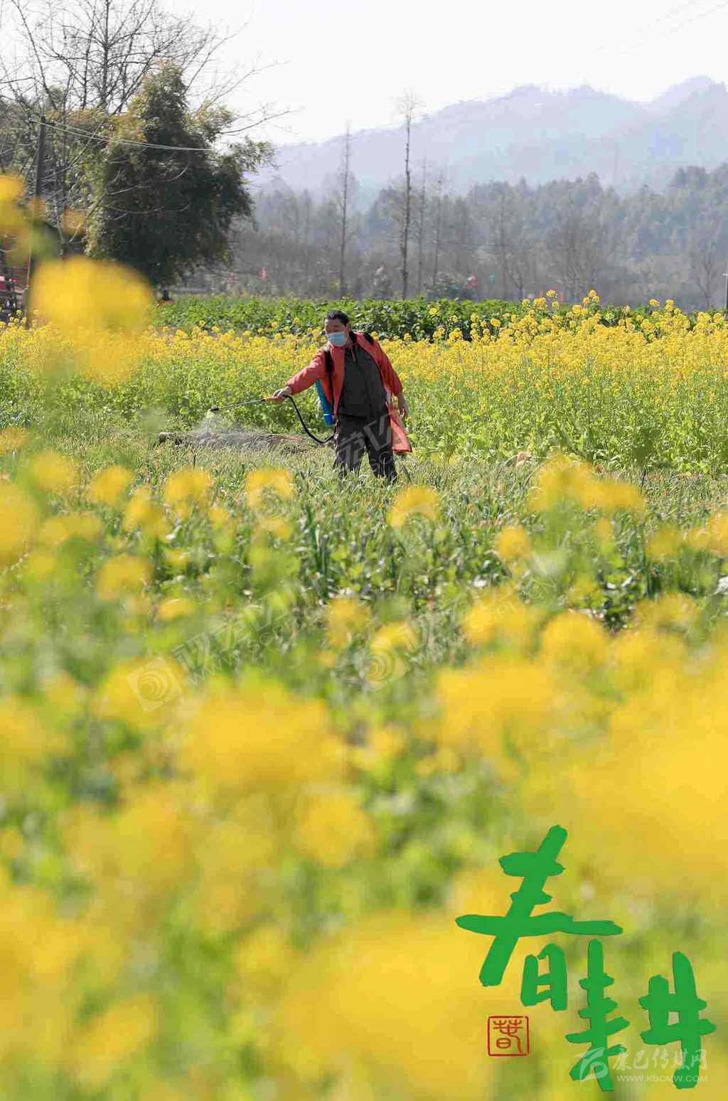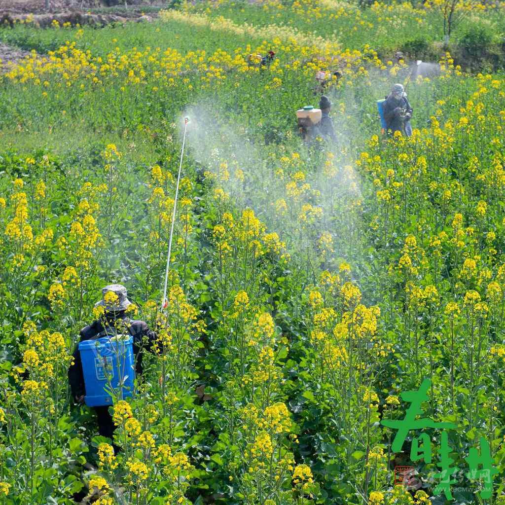 閬中市江南街道辦事處鐘山村,工人在給油菜噴灑農(nóng)藥。