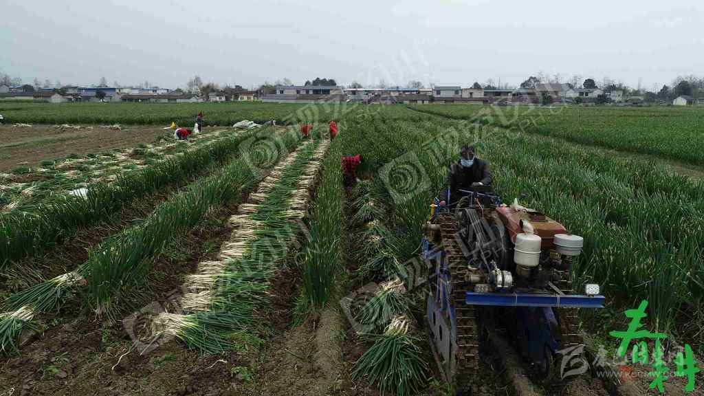 綿竹市富新鎮(zhèn)吉兆村14組,厚富種植專業(yè)合作社社員把大蔥收獲機(jī)采收后的大蔥打捆,以便后騰地種植蔬菜蓮花白。