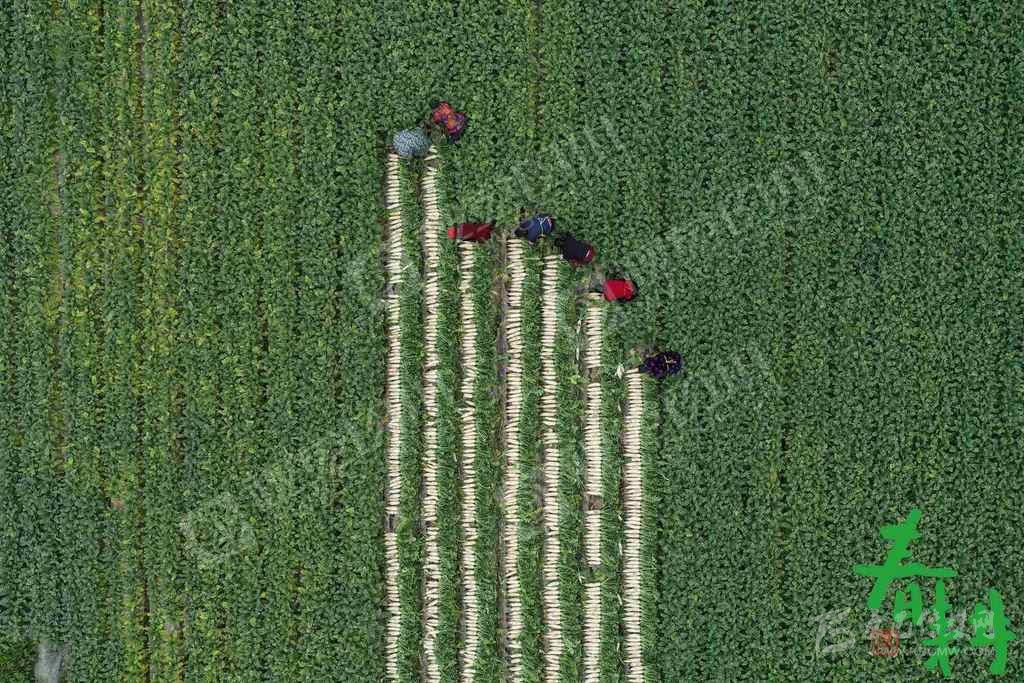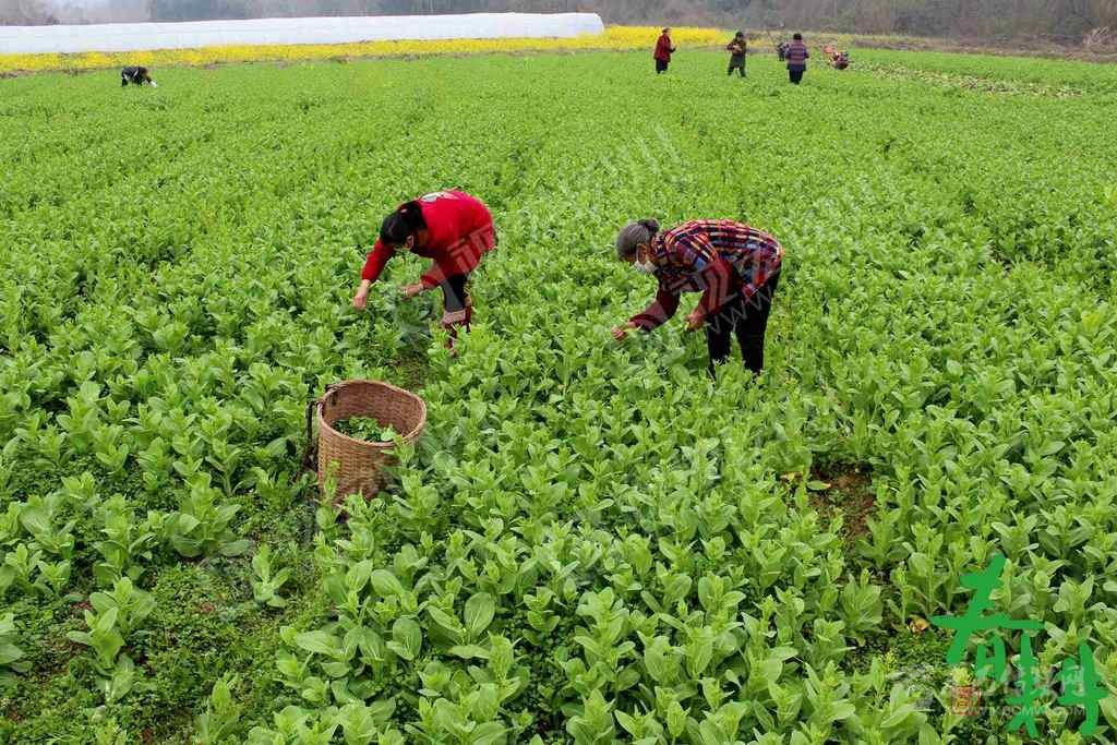 綿竹市紫巖街道雙坪村5組,當(dāng)?shù)剞r(nóng)戶在天佑家庭農(nóng)場(chǎng)收割青菜,以便騰地后用于水稻生產(chǎn)。
