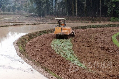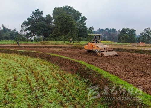 2月24日,瀘州市合江縣白米鎮(zhèn)橋上村,專業(yè)合作社的機(jī)耕手在用旋耕機(jī)耕地。 記者 郝飛 攝