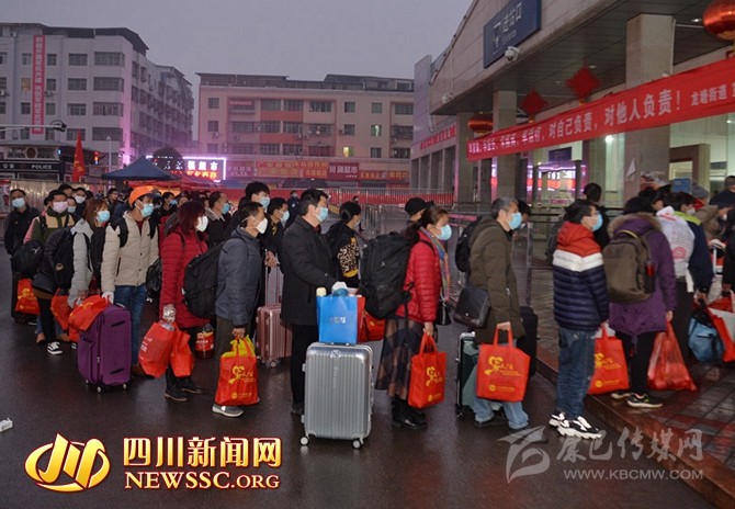 2月21日早上7時58分,乘載著1058名廣安籍農(nóng)民工的K4201返崗專列,準時出發(fā)駛往廣州站。這是今年春節(jié)后四川省開往各地的農(nóng)民工返崗專列中人數(shù)最多的一趟。從家門口到廠房,都有專車接送,廣安籍農(nóng)民工享受的是“一條龍”無縫對接服務。