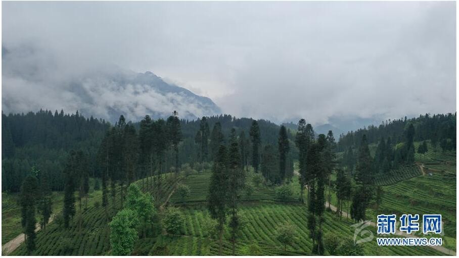 這是4月20日在蘆山縣寶盛鄉(xiāng)拍攝的茶園(無(wú)人機(jī)照片)。