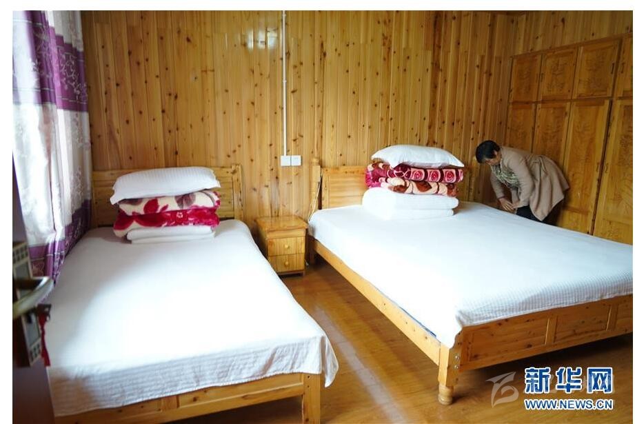 4月19日,在蘆山縣龍門(mén)鎮(zhèn)白伙新村,村民在自家民宿整理房間。
