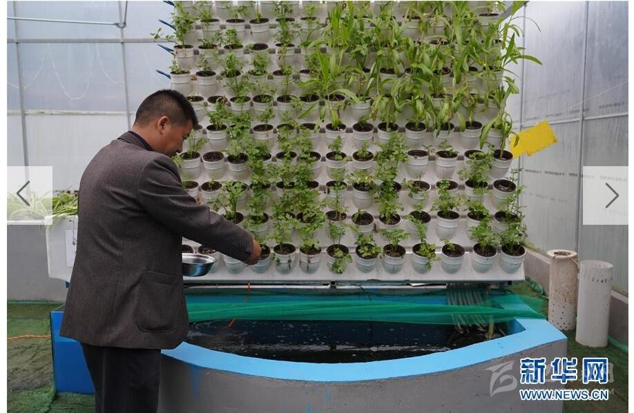 4月19日,在蘆山縣飛仙關(guān)鎮(zhèn)禾茂農(nóng)業(yè)園區(qū),工作人員給魚(yú)喂食。這里采取“魚(yú)菜共生”的模式,養(yǎng)魚(yú)和種菜的水通過(guò)過(guò)濾系統(tǒng)實(shí)現(xiàn)循環(huán)利用。