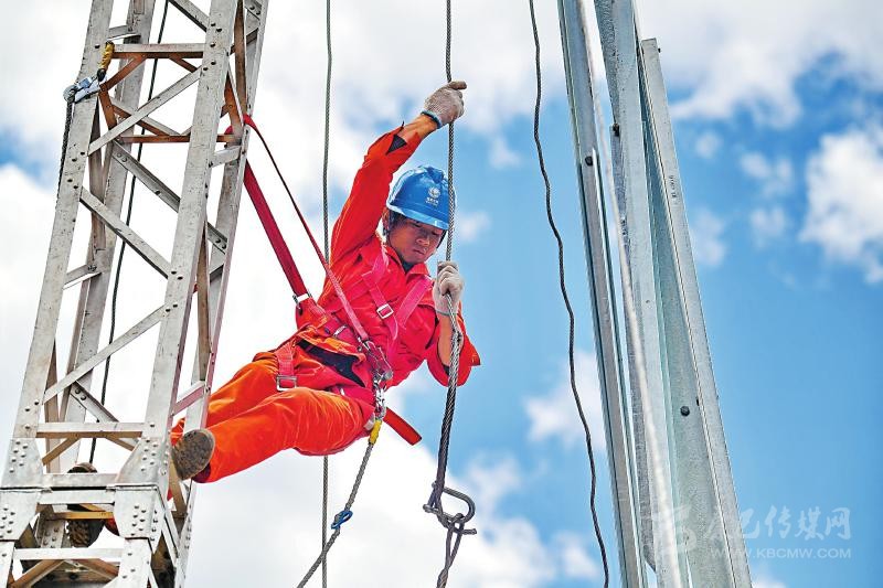 到達(dá)施工現(xiàn)場,組塔工作也是十分艱難,鐵塔結(jié)冰,僅登塔時(shí)間便多出一倍,而作業(yè)時(shí)間每次不能超過半小時(shí),還要隨時(shí)面臨大風(fēng)、大雨、冰雹等天氣,導(dǎo)致工期推進(jìn)速度較平原地區(qū)慢一倍時(shí)間?!盀榱粟s在6月20日完成任務(wù),我連每天與女兒視頻的時(shí)間都省了,全力投入工作中。”項(xiàng)目部負(fù)責(zé)導(dǎo)線展放的電力工人楊彪說。