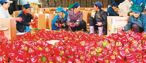 ?布拖縣拉達(dá)鄉(xiāng)村民在分揀高寒大棚蔬菜。當(dāng)?shù)乜堪l(fā)展現(xiàn)代農(nóng)業(yè),走出了一條深度貧困地區(qū)增收致富的新路子。 (攝于2019年9月)
