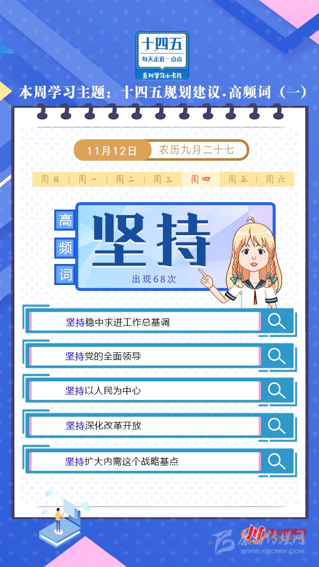 本周學習主題“十四五規(guī)劃建議·高頻詞”重磅出爐,10個高頻詞帶你學習“十四五”規(guī)劃建議。今天打卡學習“十四五”規(guī)劃建議中的高頻詞:堅持。