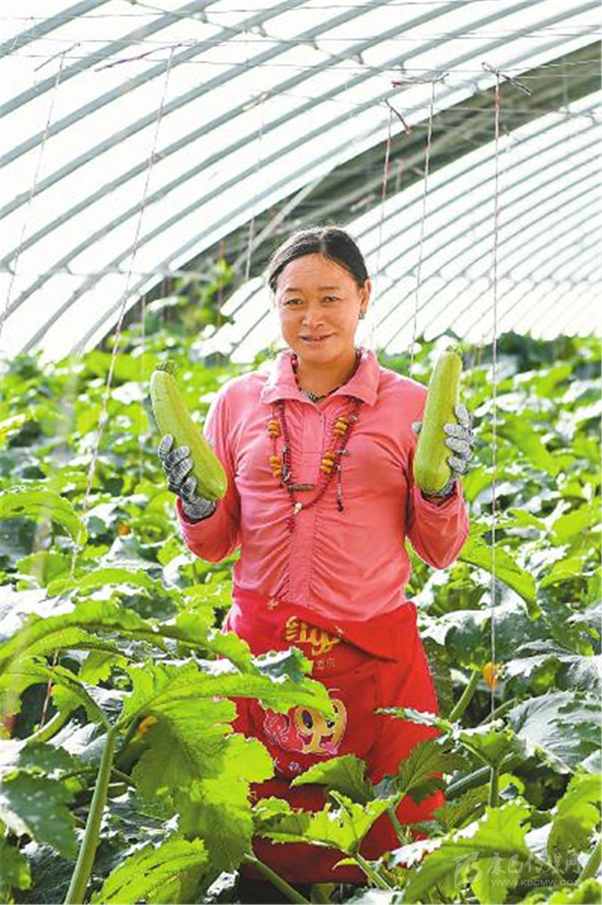 近日,在鄧瑪農(nóng)業(yè)觀光產(chǎn)業(yè)科技示范園內(nèi)工作的村民展示剛摘下的西葫蘆。 四川日報(bào)全媒體記者 楊樹 攝
