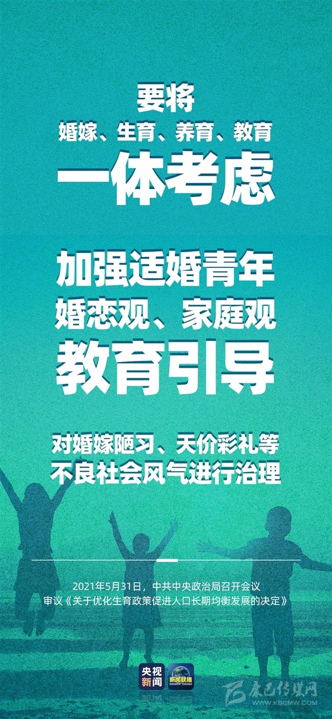 積極應(yīng)對(duì)人口老齡化,我國(guó)將出臺(tái)重大政策舉措。中共中央政治局5月31日召開會(huì)議,會(huì)議指出,進(jìn)一步優(yōu)化生育政策,實(shí)施一對(duì)夫妻可以生育三個(gè)子女政策及配套支持措施,有利于改善我國(guó)人口結(jié)構(gòu)、落實(shí)積極應(yīng)對(duì)人口老齡化國(guó)家戰(zhàn)略、保持我國(guó)人力資源稟賦優(yōu)勢(shì)。