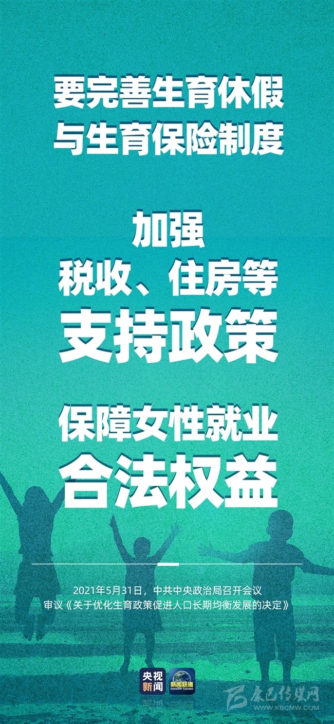 中共中央政治局5月31日召開會(huì)議,聽取“十四五”時(shí)期積極應(yīng)對(duì)人口老齡化重大政策舉措?yún)R報(bào),審議《關(guān)于優(yōu)化生育政策促進(jìn)人口長(zhǎng)期均衡發(fā)展的決定》。就積極應(yīng)對(duì)人口老齡化、調(diào)整生育政策等問(wèn)題,會(huì)議作出重磅部署。