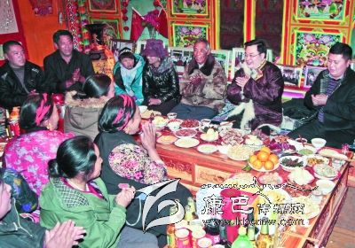“開展群眾工作以來,大家在思想上發(fā)生了很大變化,不像過去比誰的房子大、誰耍得好,現(xiàn)在比的是誰家培養(yǎng)了幾個(gè)大學(xué)生、掙了多少錢。”道孚縣鮮水鎮(zhèn)農(nóng)民謝康生說,“這兩年,胡書記每年都和我們一起過春節(jié),我們很高興。”今年1月27日,農(nóng)歷臘月二十七,州委書記胡昌升冒著嚴(yán)寒,來到道孚縣與謝康生等六戶結(jié)對(duì)的藏族“親戚”歡慶新春、共度新年。
