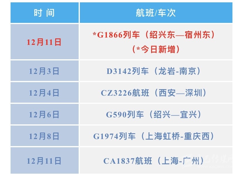 搭乘過以下交通工具的來(返)川人員,第一時(shí)間主動向社區(qū)或居(村)委會、單位或入住酒店報(bào)備旅居史,配合做好相關(guān)防控工作。
