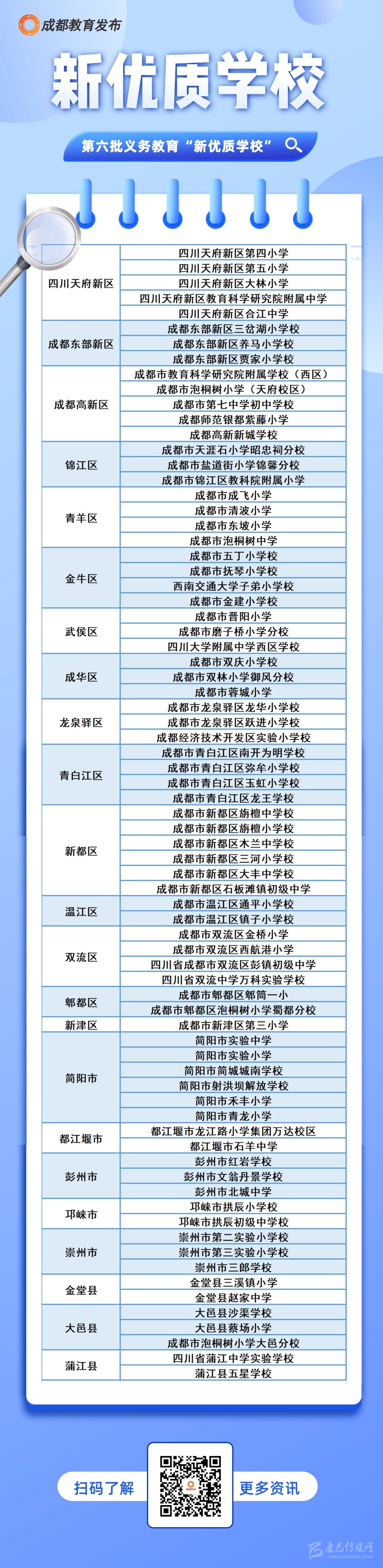 記者從成都市教育局獲悉,1月13日,成都市教育局公布全市第六批義務(wù)教育“新優(yōu)質(zhì)學(xué)校”名單,成都七中初中學(xué)校等75所學(xué)校被認定為全市義務(wù)教育“新優(yōu)質(zhì)學(xué)?!保麊胃胶螅?/p>
