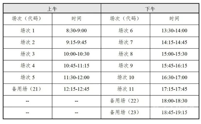 英語四級口語考試(CET-SET4)考試時間為5月21日,英語六級口語考試(CET-SET6)考試時間為5月22日。具體場次安排如下: