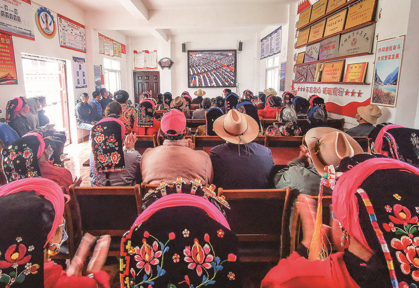 石渠縣干部群眾集中收看黨的二十大開幕會。刁海翰 攝