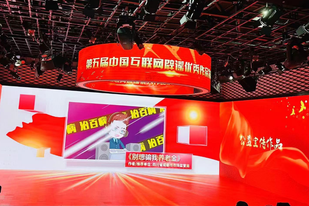 由四川省成都市市場監(jiān)管局制作的《別想騙我養(yǎng)老金》(點(diǎn)擊查看作品)獲公益宣傳版塊視頻類獎(jiǎng)項(xiàng)。