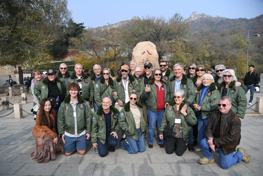 10月29日,飛虎隊(duì)老兵莫耶一行人在北京八達(dá)嶺長城合影留念。當(dāng)日,美中航空遺產(chǎn)基金會訪華代表團(tuán)成員陸續(xù)抵達(dá)北京。新華社記者任超攝