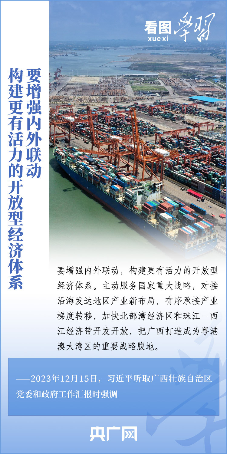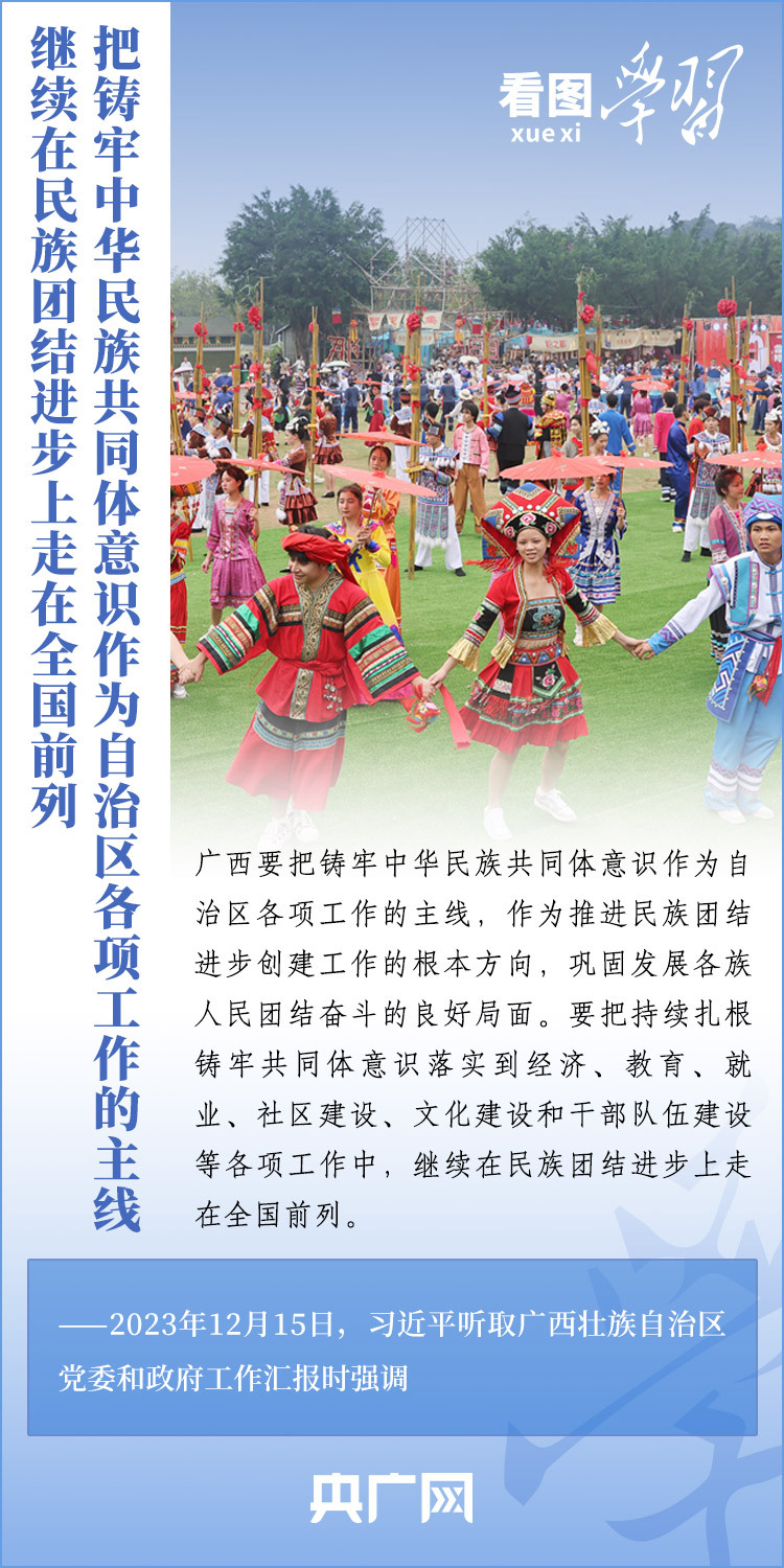 12月14日至15日,剛剛結(jié)束對(duì)越南進(jìn)行國(guó)事訪問的習(xí)近平總書記在廣西考察并聽取廣西壯族自治區(qū)黨委和政府工作匯報(bào)??倳泴?duì)廣西發(fā)展提出殷切希望,強(qiáng)調(diào)廣西要發(fā)揮自身優(yōu)勢(shì),以鑄牢中華民族共同體意識(shí)為主線,解放思想、創(chuàng)新求變,向海圖強(qiáng)、開放發(fā)展,努力在推動(dòng)邊疆民族地區(qū)高質(zhì)量發(fā)展上展現(xiàn)更大作為,奮力譜寫中國(guó)式現(xiàn)代化廣西篇章。一起來學(xué)習(xí)!