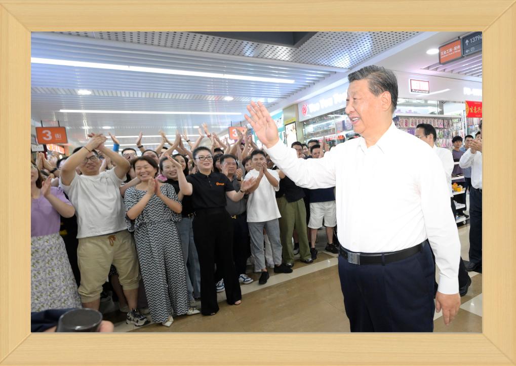 12月31日晚,國家主席習近平發(fā)表二〇二四年新年賀詞。 推近、定格、銘記,透過總書記身后書架上的一張張照片,我們記住過去,也對未來充滿信心。 不變的情懷 幾張老照片,在書架上擺放多年,人們已經(jīng)非常熟悉。 習近平同志青年時期的軍裝照,連續(xù)第3年出現(xiàn),擺放在書架醒目位置。 這令人不由得想起10年前的一段暖心對話—— 2013年11月,湖南十八洞村,村民石拔三老人見到了來此考察的習近平總書記。 “怎么稱呼您?”“我是人民的勤務員?!?/p> 歲月流轉(zhuǎn),初心不改。從照片上的青年,到人民的勤務員,“我將無我,不負人民”的赤子情懷始終如一。 家庭是個人溫馨的港灣。習近平同志一家三口和父親習仲勛在一起、習近平同志在福州時帶女兒玩的照片,自總書記第一次發(fā)表新年賀詞以來,就一直擺在書架上。 2023年,又有幾張新的總書記家庭照片映入眼簾。 一張是習仲勛同志的單人照。 2023年是習仲勛同志誕辰110周年。習近平總書記從小深受父親影響,形容父親“像一頭老黃牛,為中國人民默默地耕耘著”,“這也激勵著我將自己的畢生精力投入到為人民群眾服務的事業(yè)中,報效養(yǎng)育我的錦繡中華和父老鄉(xiāng)親”。 同夫人彭麗媛在深圳錦繡中華景區(qū)的留影、習近平夫婦懷抱女兒的合影,也是第一次出現(xiàn)在書架上。 天下之本在家。習近平總書記指出,家庭和睦則社會安定,家庭幸福則社會祥和,家庭文明則社會文明。 修身、齊家,家好、國更好。習近平總書記率先垂范,對家人的責任、對家風的傳承、對家教的認真令人動容。 不停的步履 11張2023年拍攝的照片,留下習近平總書記過去一年治國理政的經(jīng)典瞬間。 2023年,習近平總書記共進行了16次國內(nèi)考察,出訪4次,在國內(nèi)數(shù)十次會晤到訪的各國各界人士。 將鏡頭拉遠,總書記的身影不辭萬里—— 向南,習近平總書記來到位于我國大陸最南端的廣東省湛江市徐聞縣;向北,考察中國最北端的黑龍江省漠河市北極村;向西,視頻連線守衛(wèi)祖國西大門的新疆軍區(qū)紅其拉甫邊防連執(zhí)勤哨所。 這張同紅其拉甫邊防連執(zhí)勤哨所等進行視頻通話的拼版照片,正是書架上的新照片之一。 “黃河九曲、長江奔流,總讓人心潮澎湃、豪情滿懷?!?023年,長江流經(jīng)的11個省市里,習近平總書記考察了4個;黃河沿線的9個省區(qū)里,考察了5個;大運河涉及的8個省市里,考察了5個。 北瀕長江、南臨廬山、東枕鄱湖,江西九江的中國石化九江分公司位置特殊。10月,習近平總書記來到這里時,員工們圍攏過來紛紛向總書記問好。 總書記親切地說,希望你們按照黨中央對新型工業(yè)化的部署要求,堅持綠色、智能方向,扎扎實實、奮發(fā)進取,為保障國家能源安全、推動石化工業(yè)高質(zhì)量發(fā)展作出新貢獻。 “追求卓越 勇創(chuàng)一流”——墻上的標語仿佛大家的回應。這一幕,也被相機定格。 將鏡頭推近,總書記的關(guān)切無微不至—— 這是對生產(chǎn)的關(guān)心。 萬畝甘蔗林中,習近平總書記同身著民族服裝的蔗農(nóng)走在一起,大家的笑容像甘蔗一樣甜??倳洝盀楸U蠂姨菢I(yè)安全、促進蔗農(nóng)增收致富發(fā)揮更大作用”的叮嚀深入人心。 古老荔枝樹下,總書記同現(xiàn)場技術(shù)人員親切交流,指出要著力做好“土特產(chǎn)”文章,以產(chǎn)業(yè)振興促進鄉(xiāng)村全面振興。 這是對企業(yè)的關(guān)注。 9月,習近平總書記來到浙江義烏國際商貿(mào)城考察,人們紛紛從商鋪中走出來,掌聲、問候聲、歡呼聲此起彼伏。 面對商戶、小企業(yè)主們,總書記點贊道:“義烏小商品闖出了大市場、做成了大產(chǎn)業(yè),走到這一步很了不起,每個人都是參與者、建設者、貢獻者?!?/p> 這是對人民的關(guān)懷。 2023年,華北、黃淮等地出現(xiàn)極端降雨,引發(fā)洪澇和地質(zhì)災害。 北方入冬之際,習近平總書記來到北京、河北受災較重的相關(guān)地區(qū),看望慰問受災群眾。書架上這張照片,便是總書記在北京門頭溝妙峰山鎮(zhèn)水峪嘴村考察時留下的。 一度被洪水淹沒的水峪嘴村已經(jīng)修葺一新,村民家中窗明幾凈、暖氣充足。 少年兒童的成長,習近平總書記一直牽掛在心,書架上多次出現(xiàn)總書記同孩子們在一起的場景。 2023年精選的,是一張習近平總書記在北京育英學校的照片。 看到孩子們正在學生農(nóng)場勞動,總書記關(guān)心地說:“希望同學們從‘學農(nóng)’中感受到農(nóng)作的艱辛和農(nóng)民的不易,從小養(yǎng)成熱愛勞動、珍愛糧食、尊重自然的良好習慣,為建設美麗中國作貢獻?!?/p> 不竭的力量 國徽高懸,熠熠生輝。這是一個歷史性的瞬間。 2023年3月10日,北京人民大會堂。全票當選國家主席、中央軍委主席的習近平,左手撫按《中華人民共和國憲法》,右手舉拳,面向近3000名全國人大代表,鄭重宣誓。 錚錚誓言,響徹人民大會堂,回蕩在960萬平方公里土地上,回蕩在億萬中華兒女心中。 重溫激動人心的一刻,我們信心十足、精神百倍。 信心,來自堅強的領(lǐng)導核心—— 書架上,擺放著習近平總書記在內(nèi)蒙古自治區(qū)巴彥淖爾市臨河區(qū)國營新華林場考察時的一張照片。 走進正在治理的沙地,總書記感慨:“ 像‘三北’防護林體系建設這樣的重大生態(tài)工程,只有在中國共產(chǎn)黨領(l