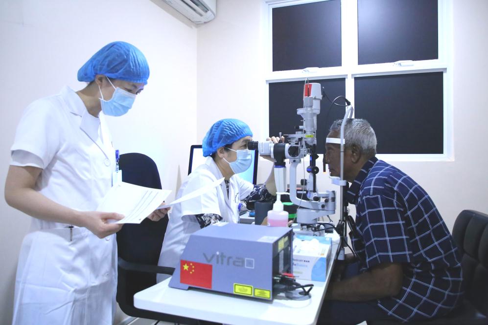 ??69歲的艾哈邁德·卡洛是中國醫(yī)療隊“光明行”活動的獲益者。兩個兒子曾帶著患有眼疾多年的老人輾轉(zhuǎn)多家醫(yī)院,均因手術(shù)難度大而無法得到有效治療。2023年,中國醫(yī)療隊醫(yī)生經(jīng)過充分評估后,給老人成功實施了手術(shù)。術(shù)后揭開眼罩時,老人家激動地說:“醫(yī)生,我可以看到你的胸牌了,謝謝你!”老人的兒子也在社交媒體發(fā)帖說:“真誠感謝中國醫(yī)生?!背酥尾?,中方還著力培訓(xùn)當(dāng)?shù)蒯t(yī)務(wù)人員,力爭為當(dāng)?shù)卮蛟煲恢А皫Р蛔摺钡难劭茖<谊犖椤?/span>