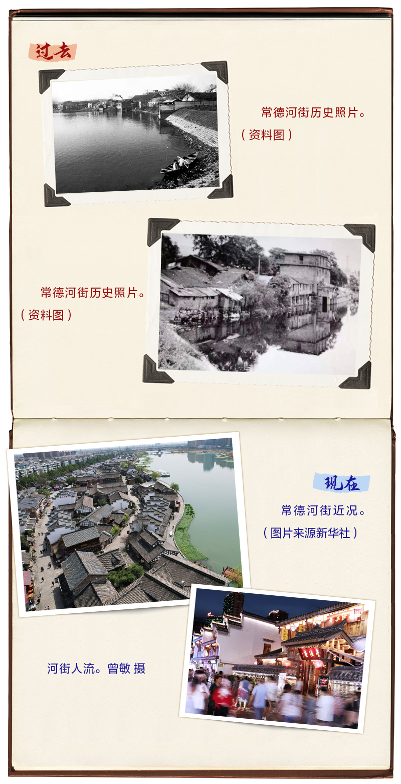“大河街的金子,小河街的銀子,麻陽街的痞子。上南門高,下南門低,銀子出在河街里。”這句流傳于常德民間的諺語,形象生動地詮釋了早期河街濃郁的商業(yè)氛圍和市井生活氣息。新中國成立后,水上運輸逐漸被現(xiàn)代交通工具所取代,河街曾經(jīng)的風光也隨之沒入跌宕起伏的歷史長河。2016年,常德市復原老河街風貌,建成以老常德時期河街為原型的常德河街。2022年,常德河街獲評國家級旅游休閑街區(qū)、國家級夜間文化和旅游消費集聚區(qū)。