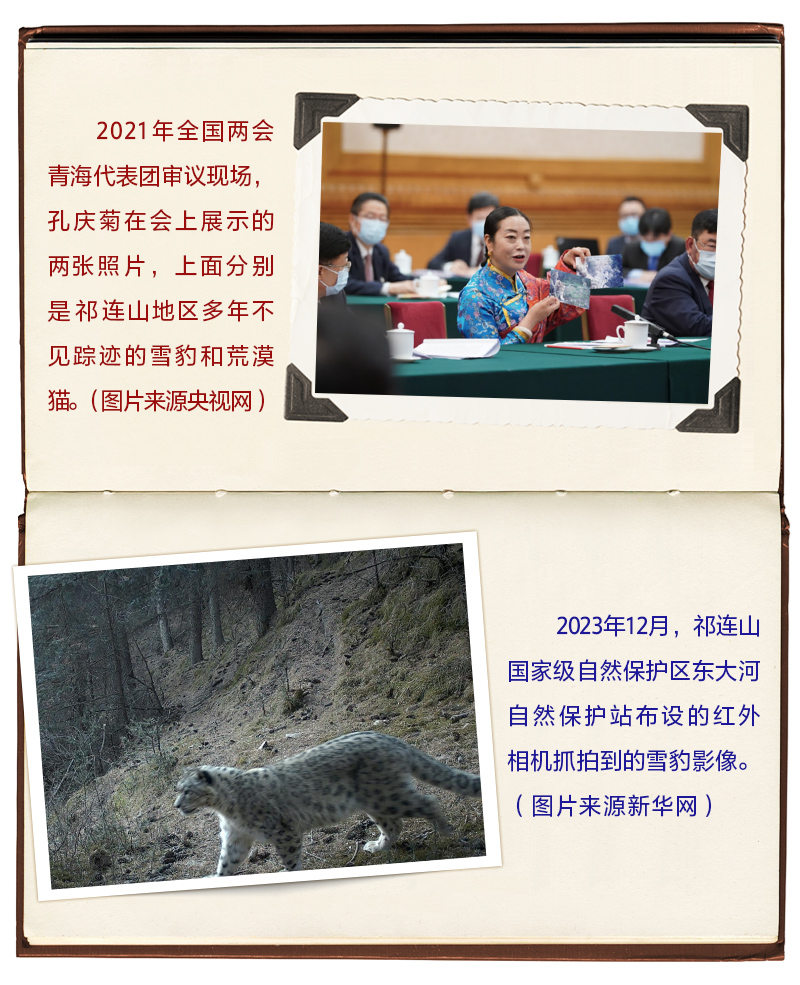2021年3月7日,在全國兩會青海代表團審議現(xiàn)場,孔慶菊代表拿出的兩張“大萌貓”照片,吸引了習近平的目光。