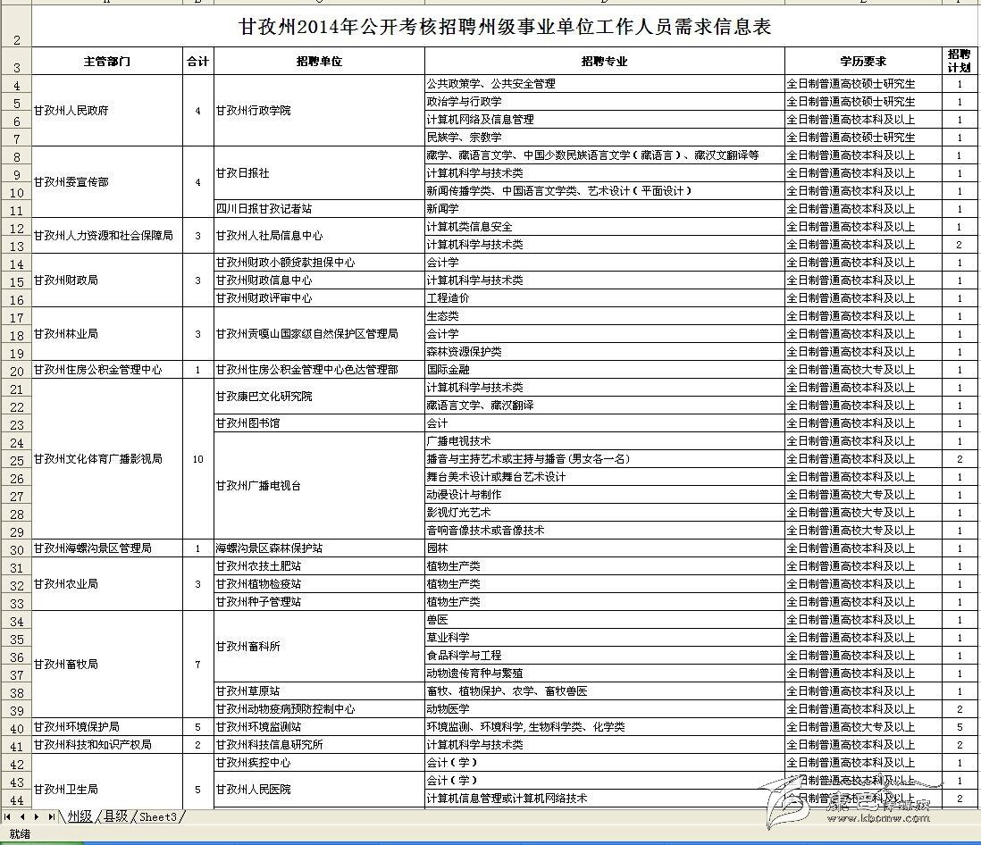 附件:1.甘孜州2014年公開(kāi)考核聘用事業(yè)單位工作人員需求信息表
