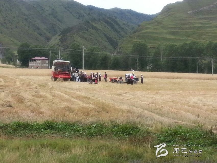 本網(wǎng)訊(孫學花 文/圖)近日,當筆者來到康定縣新都橋時,一片片金黃的麥田展現(xiàn)在眼前,收割機不停的工作場面,拖拉機忙碌的來回在天地合牧民家中,豐收的喜悅嵌在牧民的臉上。“現(xiàn)在正是收割的季節(jié),我們根本不用人工,全是機器設備,割糧食用的是收割機是政府給了補貼的,運輸不用人工,都是用拖拉機拉,我們只需要上個車就完了,麥子曬干了直接用脫粒機,磨面直接用電磨,可以說完全是農機一體化運作,我們老百姓是越來越輕松了,糧食產(chǎn)量比以前大幅度提高,因為我們現(xiàn)在用科學種田,用復合肥、地膜等科學技術,日子越來越幸福。”瓦澤鄉(xiāng)瓦澤村村民降初高興地分享著他家豐收的喜悅。