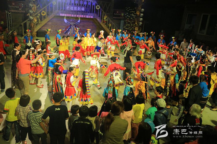 巴塘天籟童聲合唱團與阿里山小學小朋友、當?shù)厝罕?、外來游客同跳巴塘弦子?br />