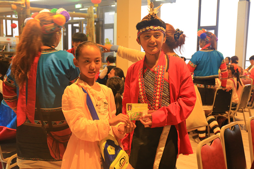 合唱團的小朋友與阿里山小學(xué)小朋友互贈卡片。