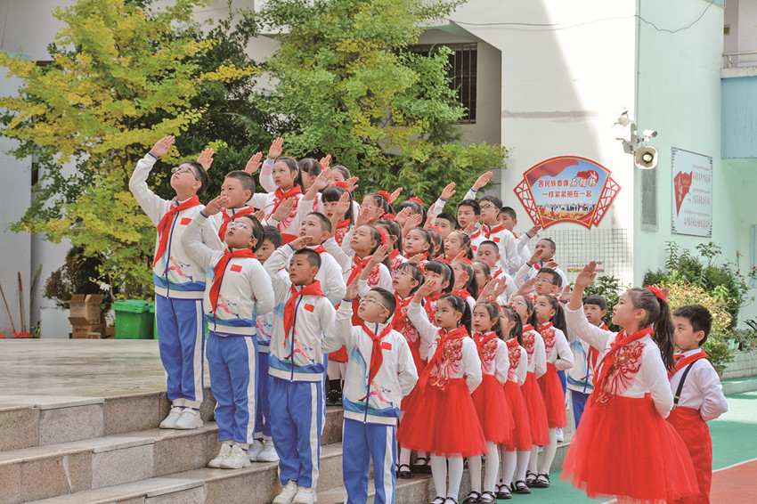 活躍提升組織生活也是少先隊工作強基固本的重要環(huán)節(jié)。通過健全少先隊階梯式成長激勵體系;全面實施分批入隊、分段教育、分級激勵和推優(yōu)入團(tuán);依托“紅領(lǐng)巾獎?wù)隆备采w隊中教育全過程等措施,全市14至15周歲新入團(tuán)團(tuán)員經(jīng)由少先隊組織推優(yōu)入團(tuán)達(dá)100%。此外,全覆蓋開展“開學(xué)第一堂隊課”、主題隊課活動,規(guī)范舉行入隊儀式等,讓少先隊員組織意識和光榮感全面增強。