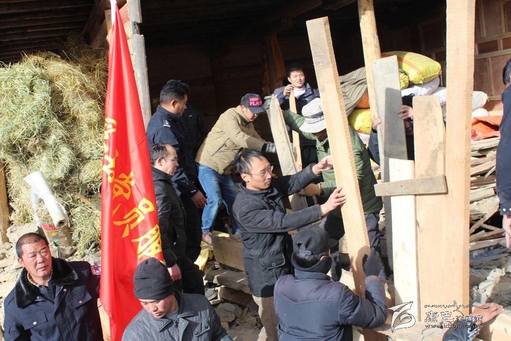 結(jié)對(duì)干部幫助道孚縣中古村災(zāi)民搶救財(cái)產(chǎn)。