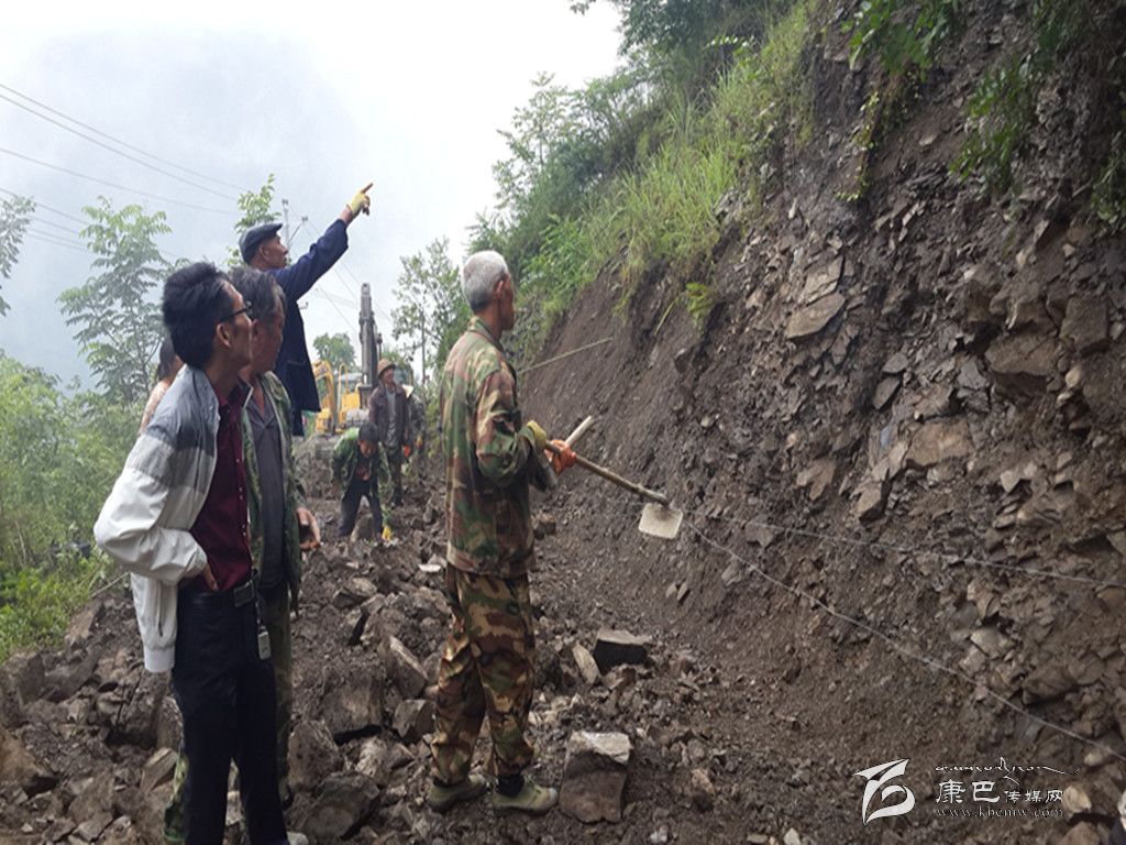 瀘定縣弱村無(wú)職黨員義務(wù)投工投勞搶修道路。