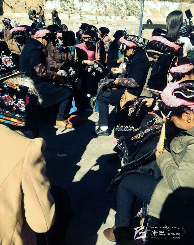 婦女們?cè)趯W(xué)習(xí)嘉絨藏族刺繡技藝。