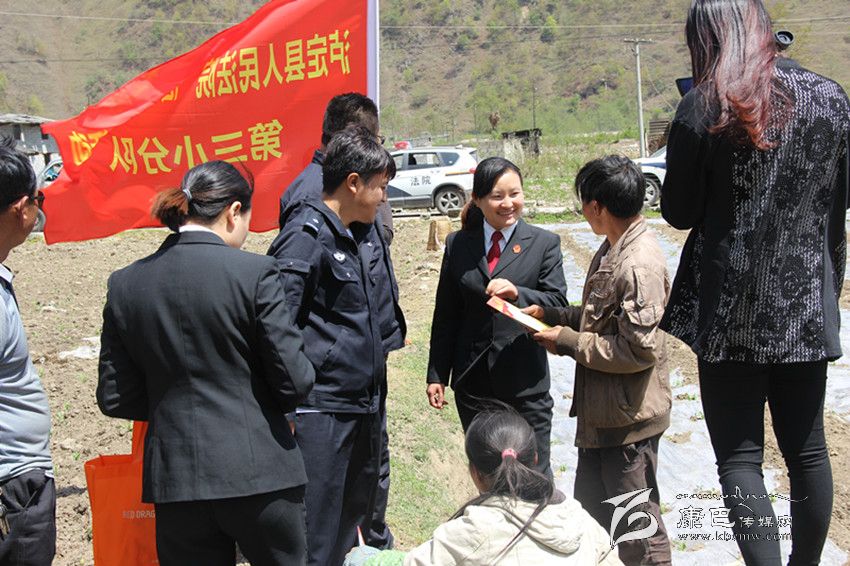 在法制宣傳進(jìn)鄉(xiāng)村活動(dòng)中,瀘定縣法院始終堅(jiān)持圍繞服務(wù)中心大局,把矛盾糾紛隱患多的移民村和群眾觀念相對(duì)落后的貧困村作為重點(diǎn)對(duì)象。利用農(nóng)閑季節(jié)、重大節(jié)慶,采取經(jīng)典案例、法制講座和發(fā)放雙語(yǔ)宣傳手冊(cè)等群眾喜聞樂(lè)見(jiàn)的形式,積極開(kāi)展送法下鄉(xiāng)、以案說(shuō)法和法律咨詢服務(wù),不斷提高群眾學(xué)法、守法、用法意識(shí)。