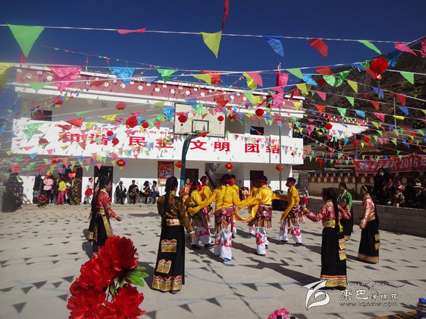 正月初八上午十點(diǎn),鄉(xiāng)城縣移民搬遷新村——太年村群眾自編自演的新年文藝節(jié)目在彩旗飄飛的村活動室舉行,《舞動高原》、《情滿大山》、《唱支山歌給黨聽》、《小蘋果》等近兩個小時的歌舞節(jié)目依次亮相,一位位“草根”明星輪番登臺,一個個歌頌家鄉(xiāng)新風(fēng)貌、展現(xiàn)搬遷新村新風(fēng)采的節(jié)目贏得他觀眾如潮的掌聲。村民們自編的感恩黨、贊美新生活的山歌唱了一曲又一曲,精彩的節(jié)目吸引了附近鄉(xiāng)村數(shù)百人前來觀看。