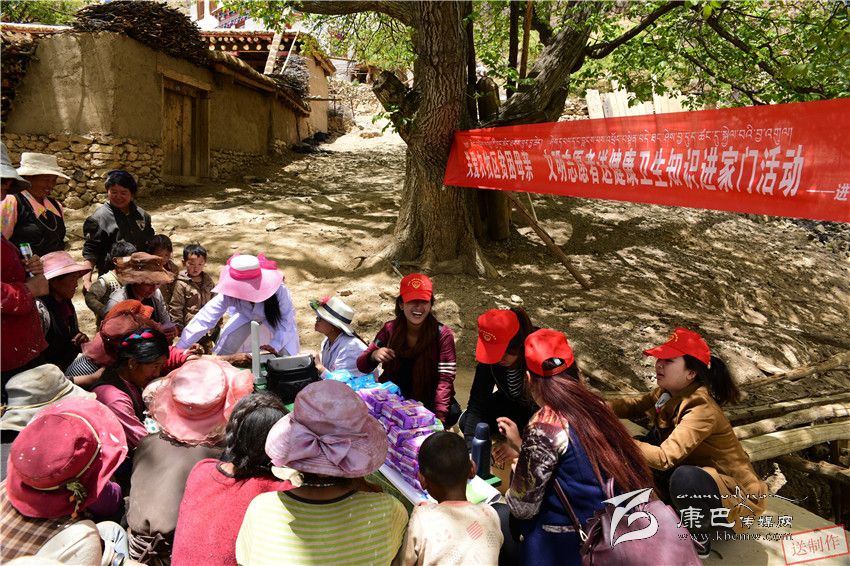 中心絨鄉(xiāng)安里頂村的四郎志瑪剛剛給地里的農(nóng)作物澆水回來(lái),就發(fā)現(xiàn)村里來(lái)了一群戴著小紅帽的“不速之客”,他們周?chē)奂崆摆s來(lái)的鄉(xiāng)親。兩位穿著白大褂的“小紅帽”正在為排著長(zhǎng)隊(duì)的鄉(xiāng)親們免費(fèi)體檢,另外還有兩位戴“小紅帽”的女性志愿者召集婦女村民為她們講解健康衛(wèi)生知識(shí),演示女性衛(wèi)生用品的使用方法。
