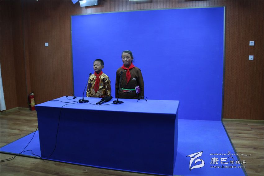 走進錄播間,二年級學生噶榮和四年級學生卓瑪青措正在學習如何進行雙語播音,他們對眼前的新生事物充滿了好奇,一字一句說得甚是仔細,生怕說錯了一個字,一個語調。作為藏文播音,噶榮的藏語講得標準流利。漢語主播卓瑪青措,卻顯得有些靦腆,“播校園新聞”是她的夢想,在老師的指導下,她正在逐步適應。