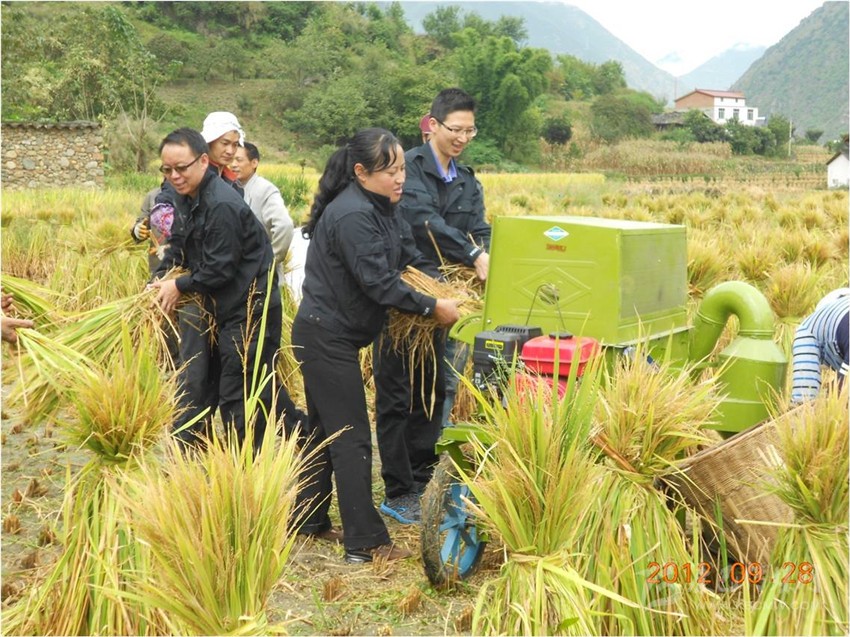 幫助“親戚”打谷子。