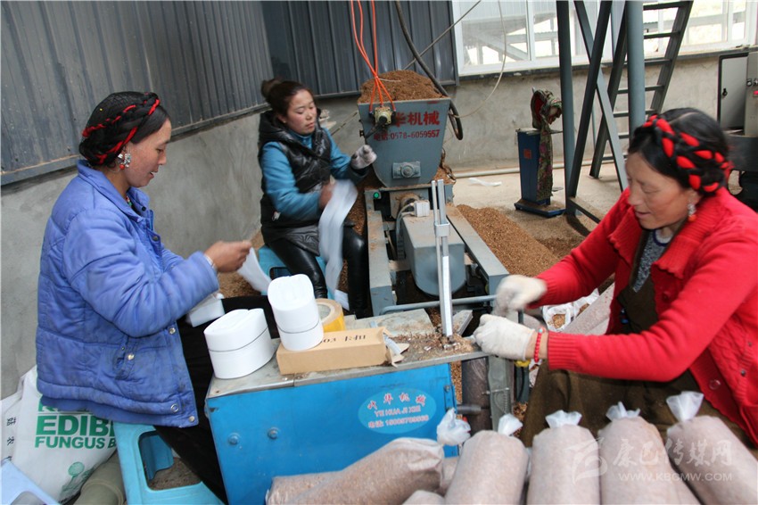 八角樓鄉(xiāng)帕姆嶺村村民帕塔志瑪已經(jīng)是熟練工了,去年9月,她被招收進(jìn)甘孜州日基農(nóng)業(yè)開發(fā)有限公司,經(jīng)過9個(gè)月的培訓(xùn)后,她實(shí)現(xiàn)了由農(nóng)民到產(chǎn)業(yè)工人的華麗轉(zhuǎn)身?!耙郧安皇炀毜臅r(shí)候,一天只能種3000多袋,現(xiàn)在可以種9000多袋,一天的收入有100元,下班后,吃住都在家里”。帕塔志瑪說,女兒在甘孜衛(wèi)校上學(xué),兒子在雅江中學(xué)上高一,兩個(gè)孩子一年的開支就要兩三萬元??伤齻円患颐磕甑慕?jīng)濟(jì)來源主要靠挖蟲草和撿松茸,還要受氣候和市場(chǎng)銷售影響,微薄的家庭收入,供養(yǎng)兩個(gè)孩子讀書感到力不從心。成為公司員工后,在培訓(xùn)期間,公司都按照現(xiàn)在工資的一半發(fā)放勞務(wù)費(fèi)。目前,她和丈夫都在公司工作,丈夫在粉碎組(將木材磨成粉末),一天有130元的收入,夫妻倆一個(gè)月就有7000多元的收入。在蟲草季節(jié),公司還要放蟲草假,工人們可以上山挖蟲草,這樣一來,家里的經(jīng)濟(jì)收入是以前的好幾倍。