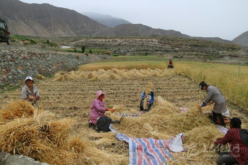 本網(wǎng)訊(劉小兵 金鑫 攝影報(bào)道)眼下,我州多地群眾正在忙碌春耕,海拔較低、氣溫較高的得榮縣曲雅貢鄉(xiāng)卻已是一片麥浪金黃,忙碌著收割冬小麥的人們?nèi)宄扇旱厝雎湓谔镩g地頭。一張張溢滿笑容的臉和一束束飽滿的麥穗構(gòu)成了一幅幅豐收的喜悅圖景。